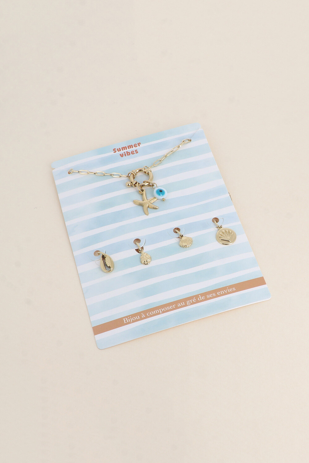 Charmkette „Meeresfrüchte“ mit 6 austauschbaren Charms aus Edelstahl