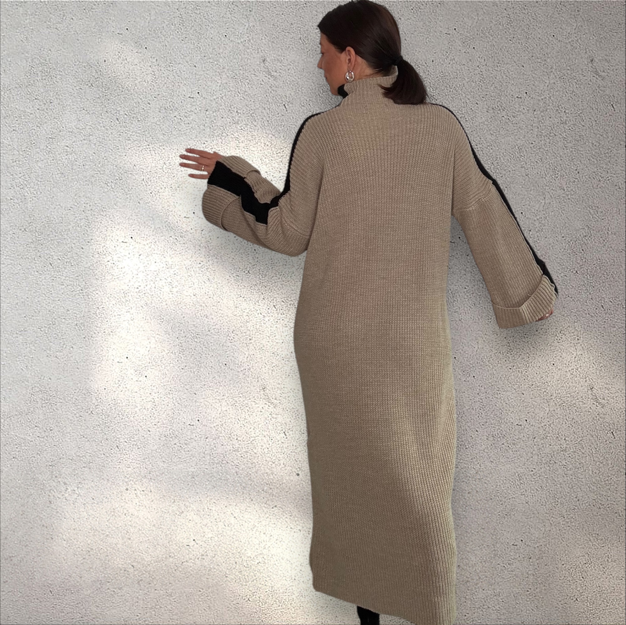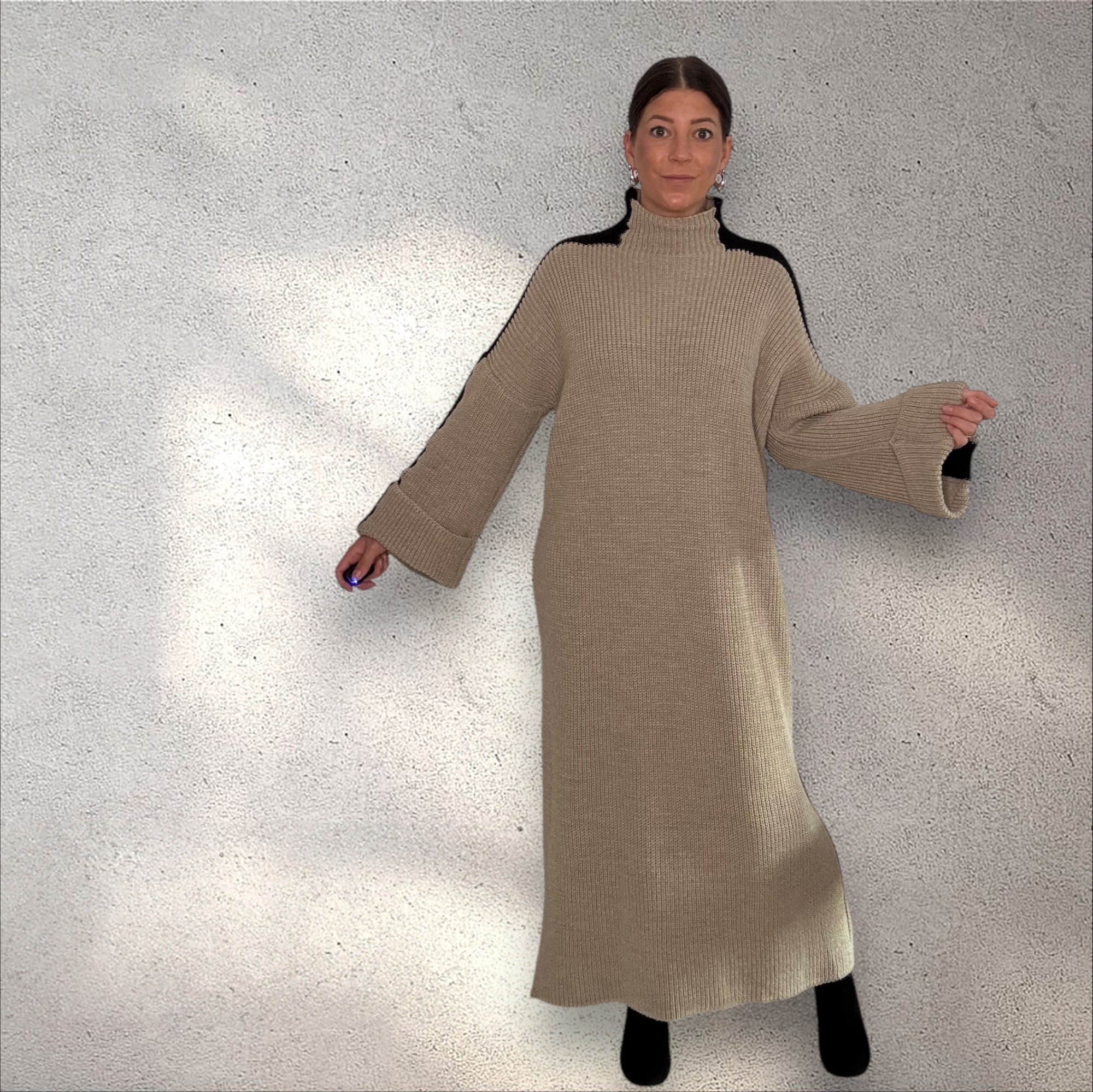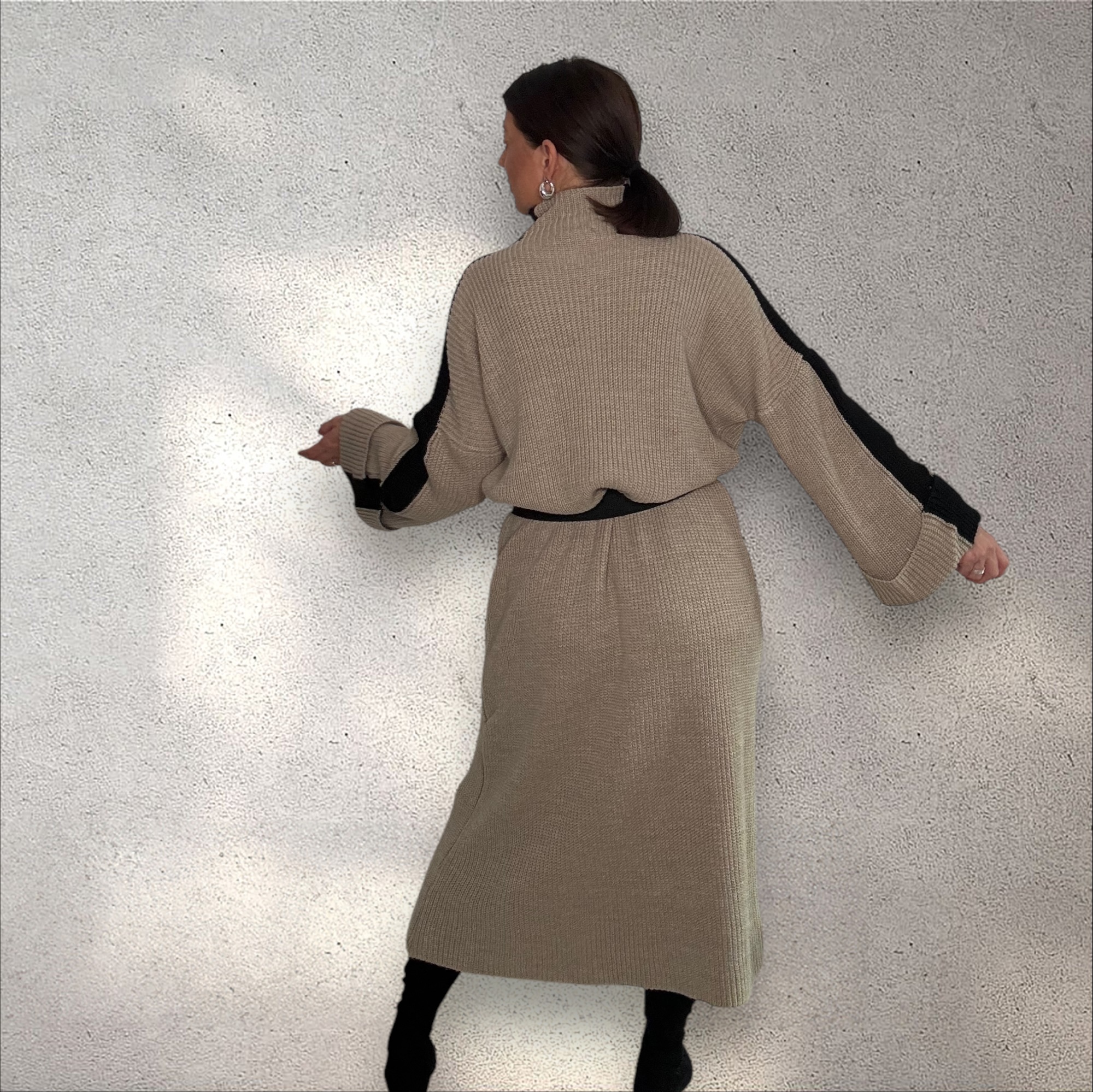 Maxi-Strickkleid in beige & schwarz– Gemütlich & Stilvoll