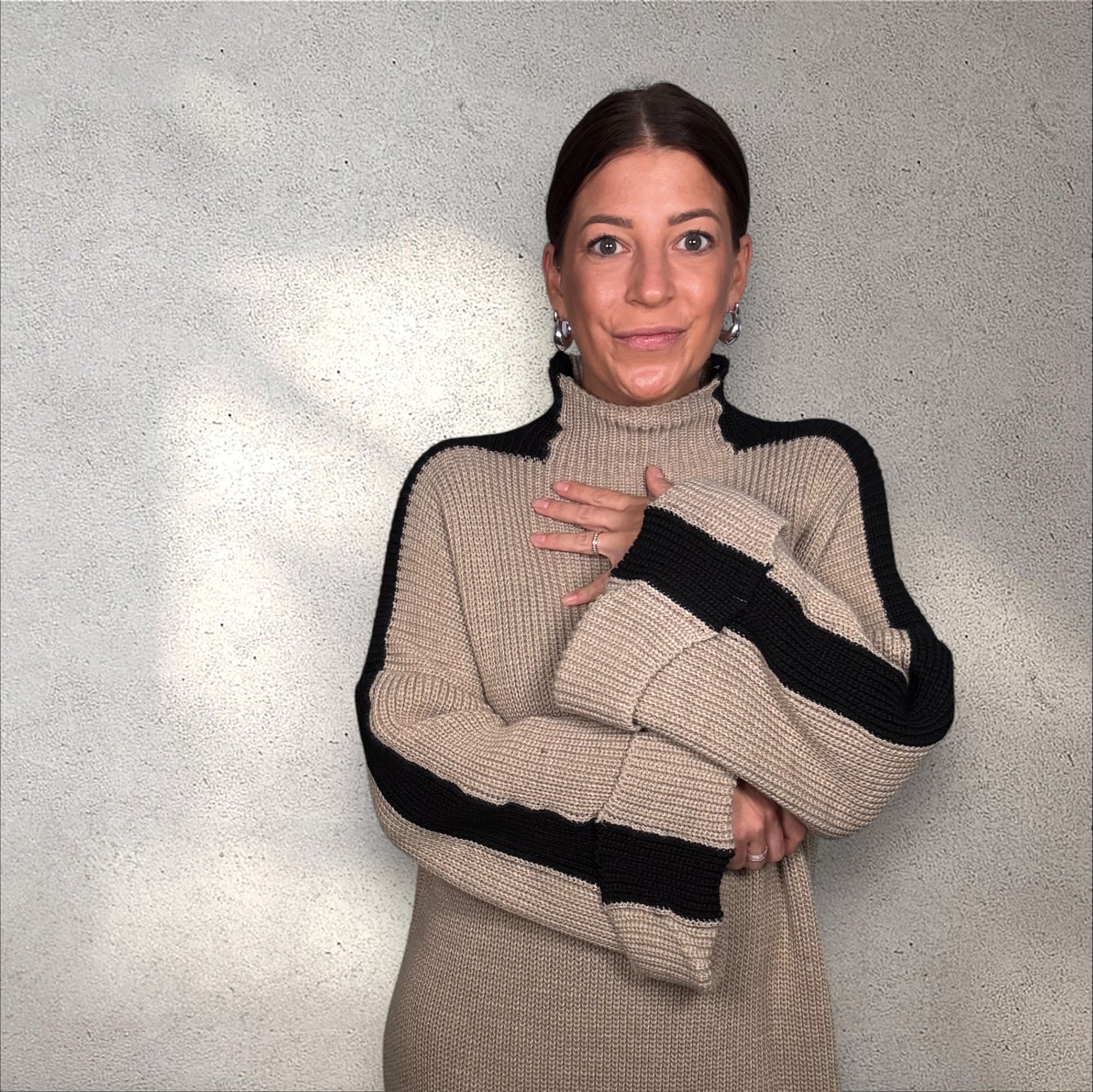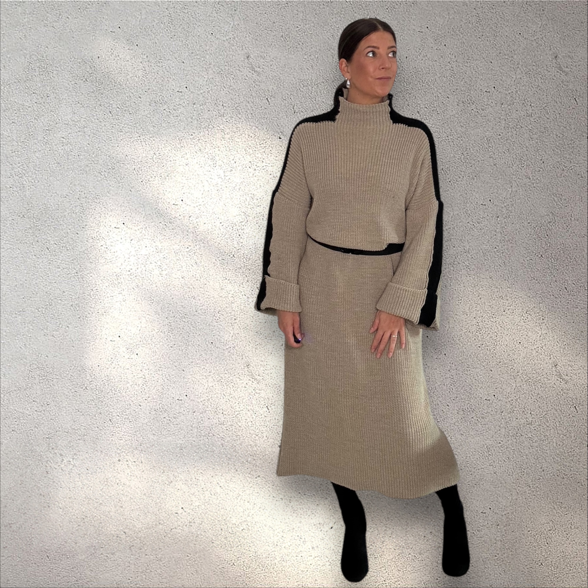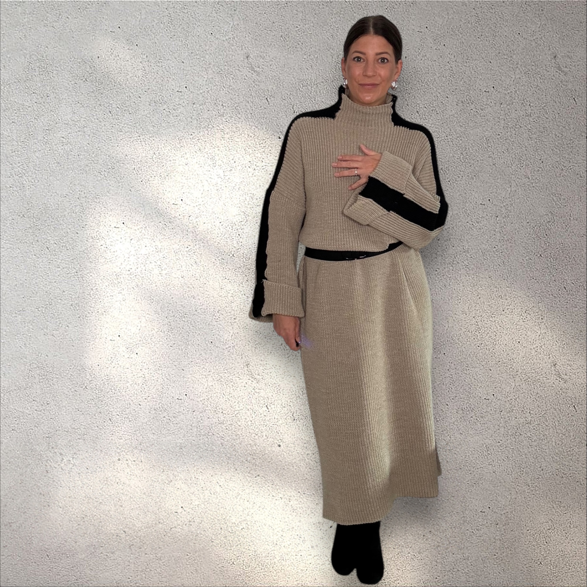 Maxi-Strickkleid in beige & schwarz– Gemütlich & Stilvoll