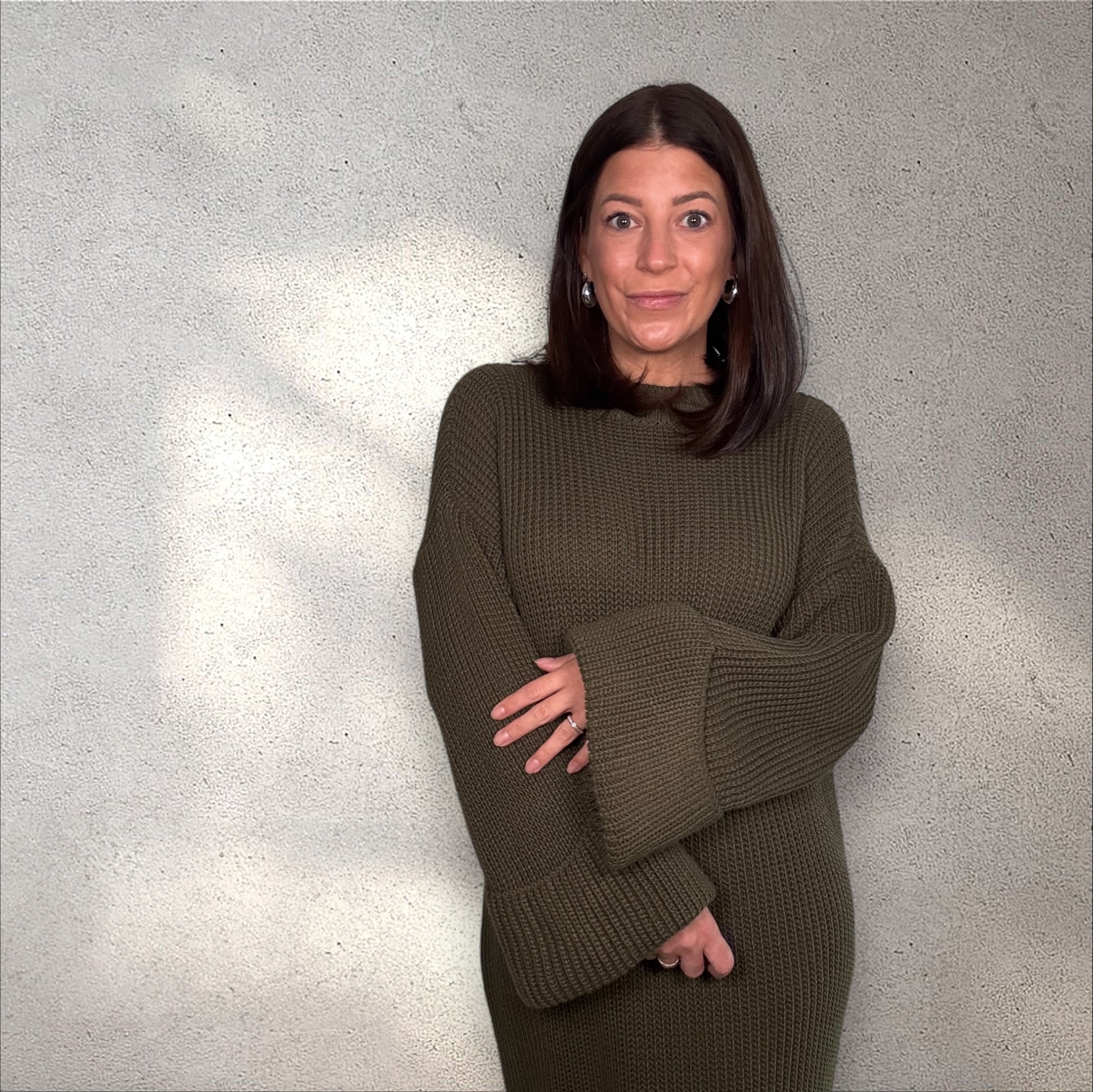 Dieses wunderschöne Maxi-Strickkleid kombiniert höchsten Tragekomfort mit modernem Design. Der lockere Schnitt umspielt die Figur, während die leicht ausgestellten Ärmel und die feine Strickstruktur dem Kleid eine elegante und zugleich lässige Note verleihen. Das edle khaki macht es zu einem vielseitigen Begleiter für jede Gelegenheit.