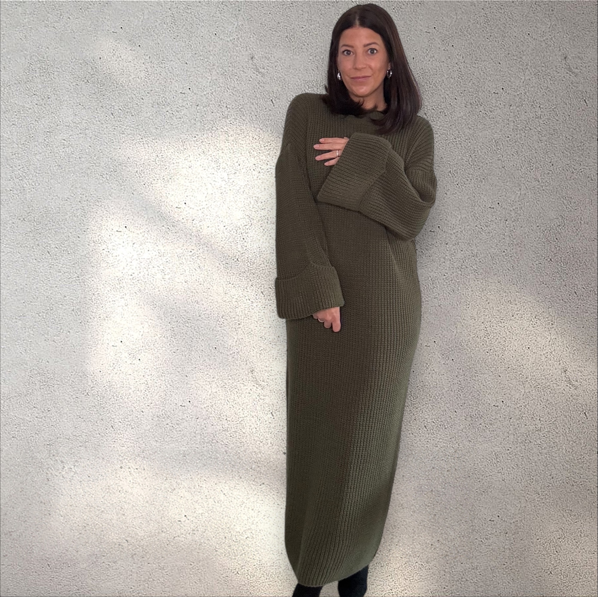 Maxi-Strickkleid in khaki – Gemütlich & Stilvoll