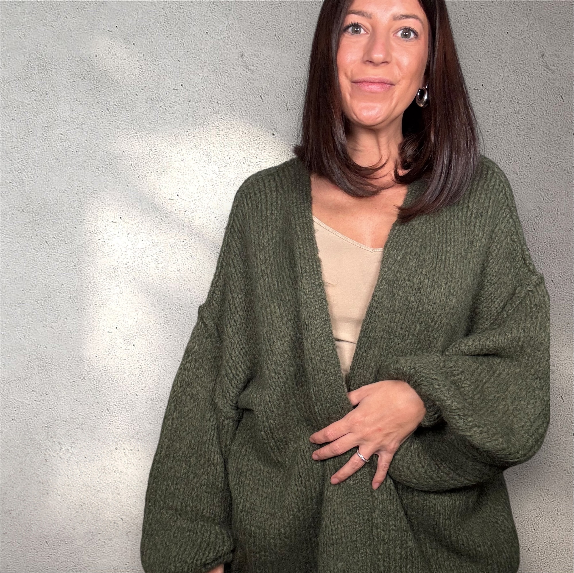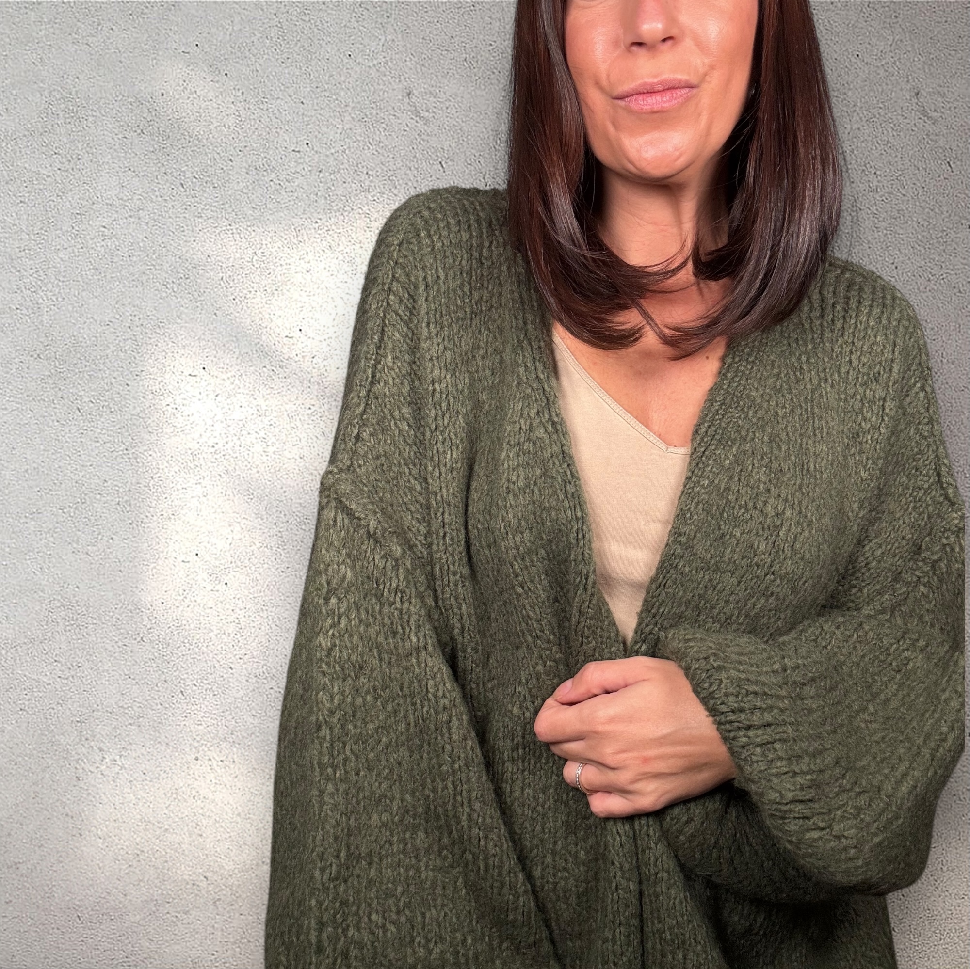 Dieser gemütliche Cardigan ist ein echter Allrounder für die kühleren Tage. Mit seinem lockeren Schnitt und dem hochwertigen Strickmaterial verbindet er Komfort mit Stil – ein Must Have für jede Garderobe!