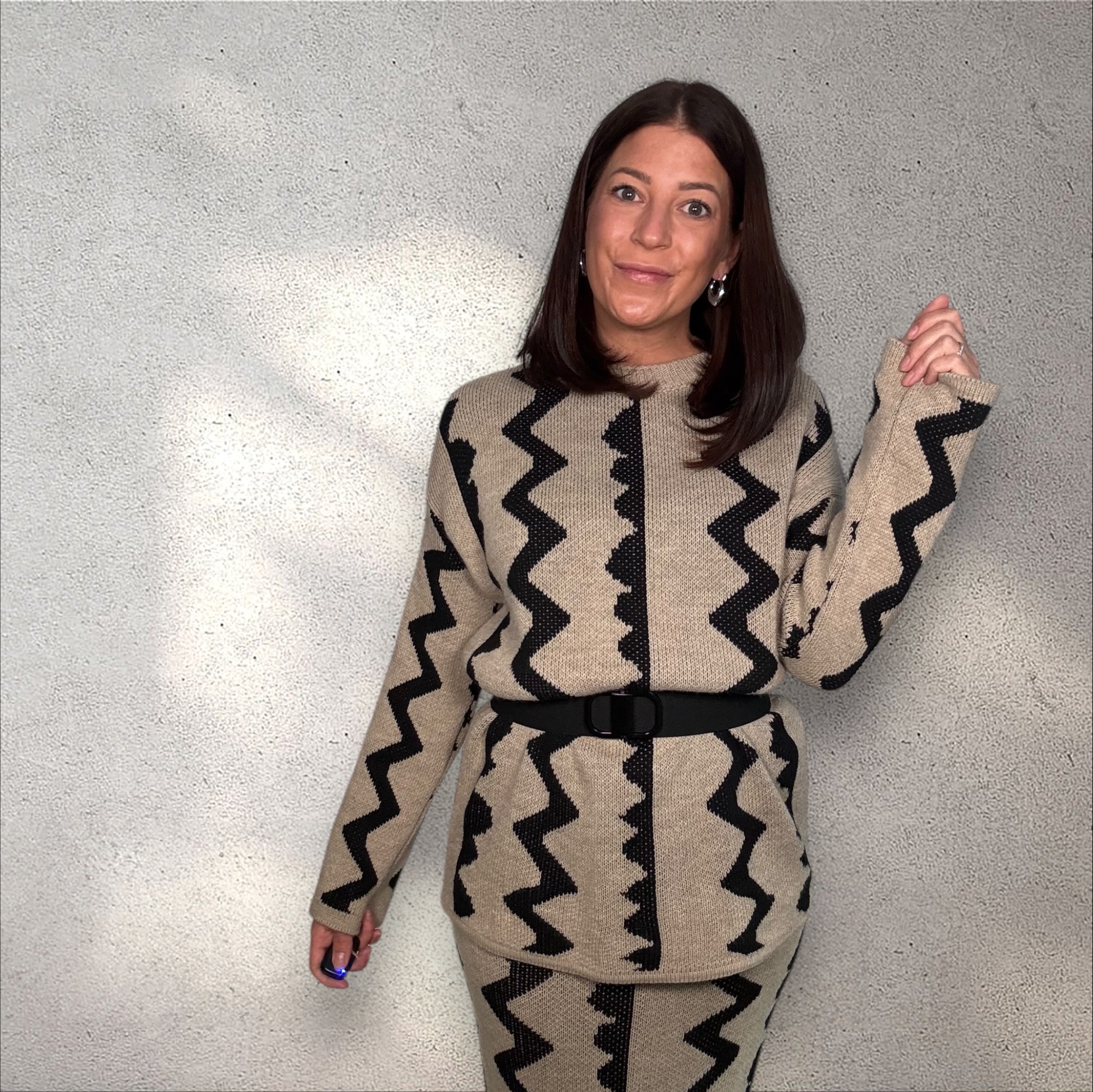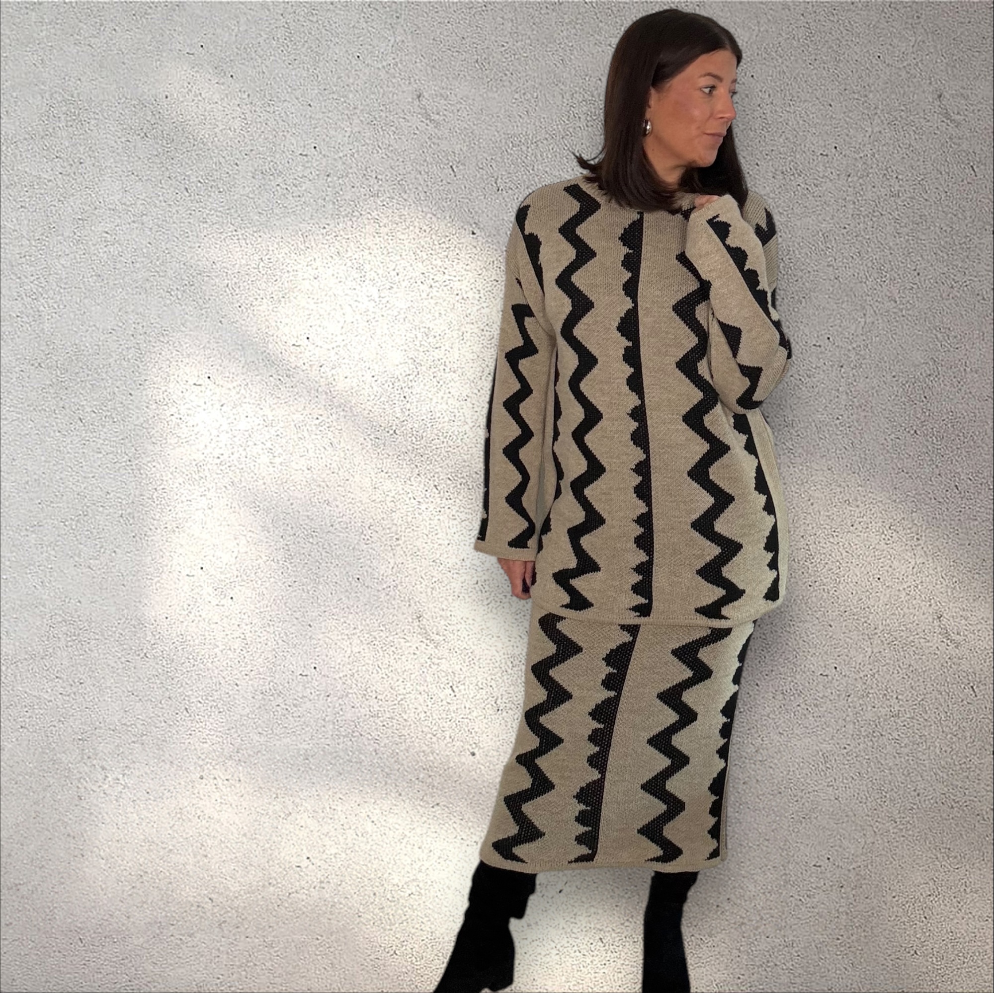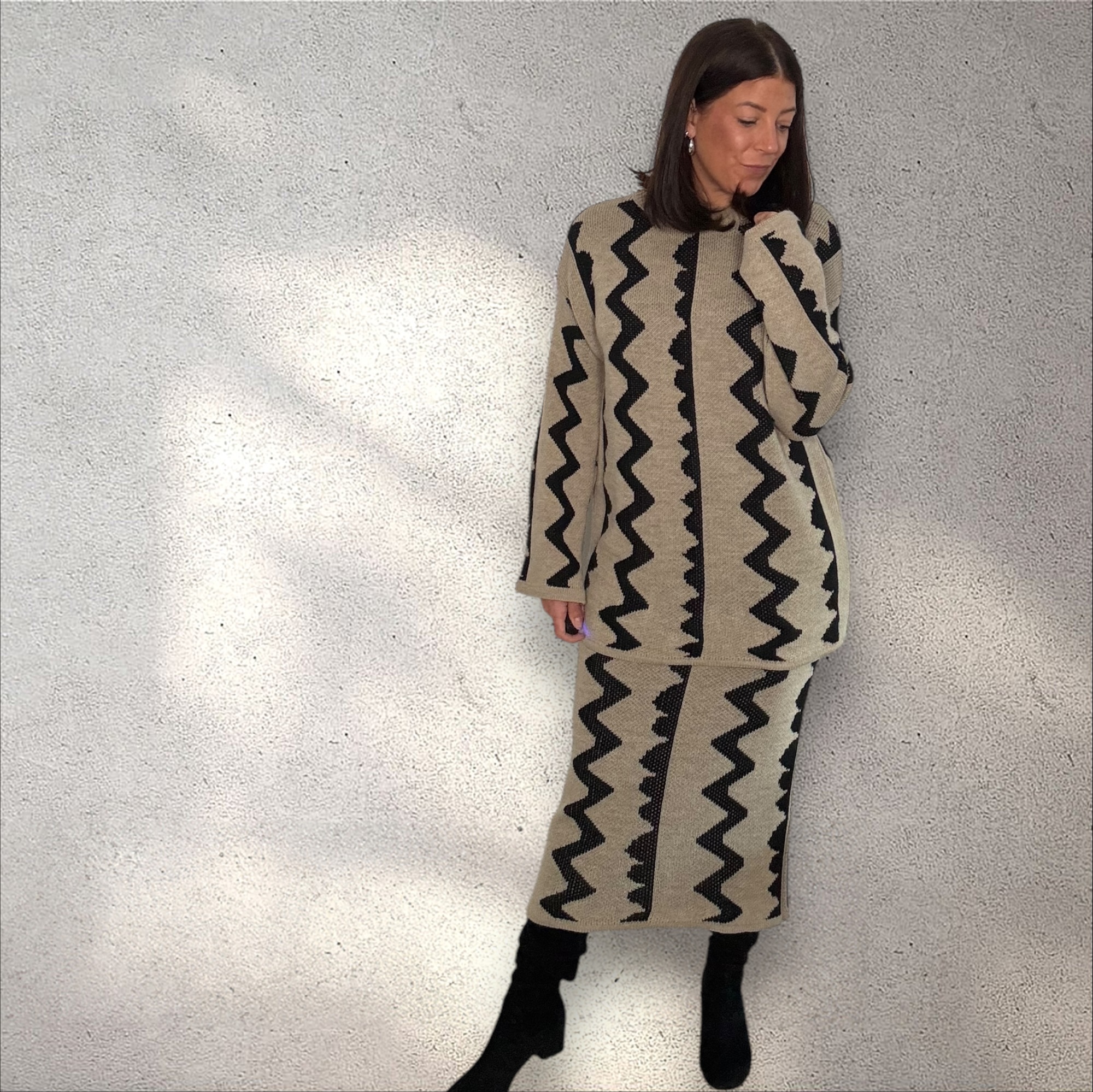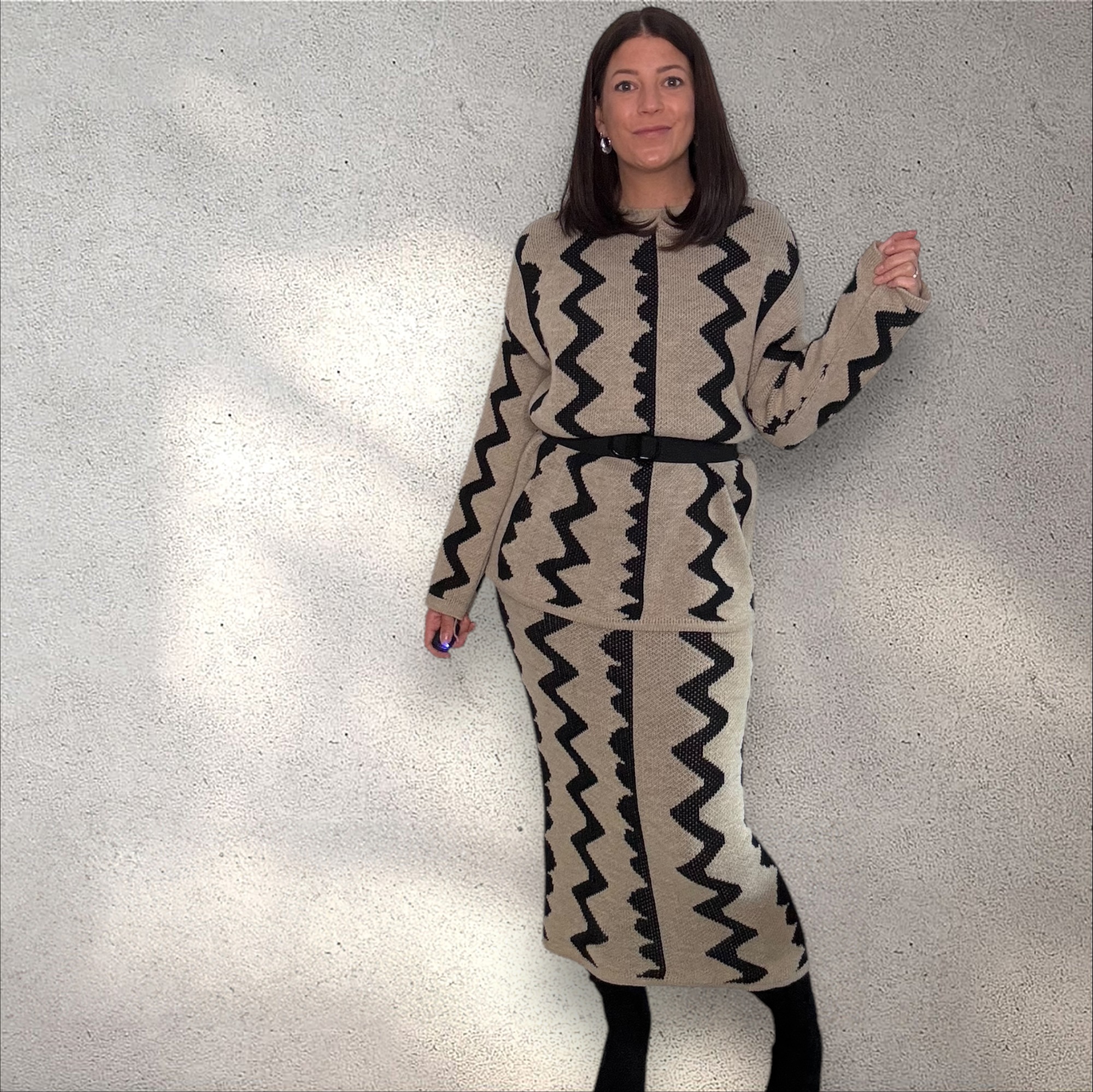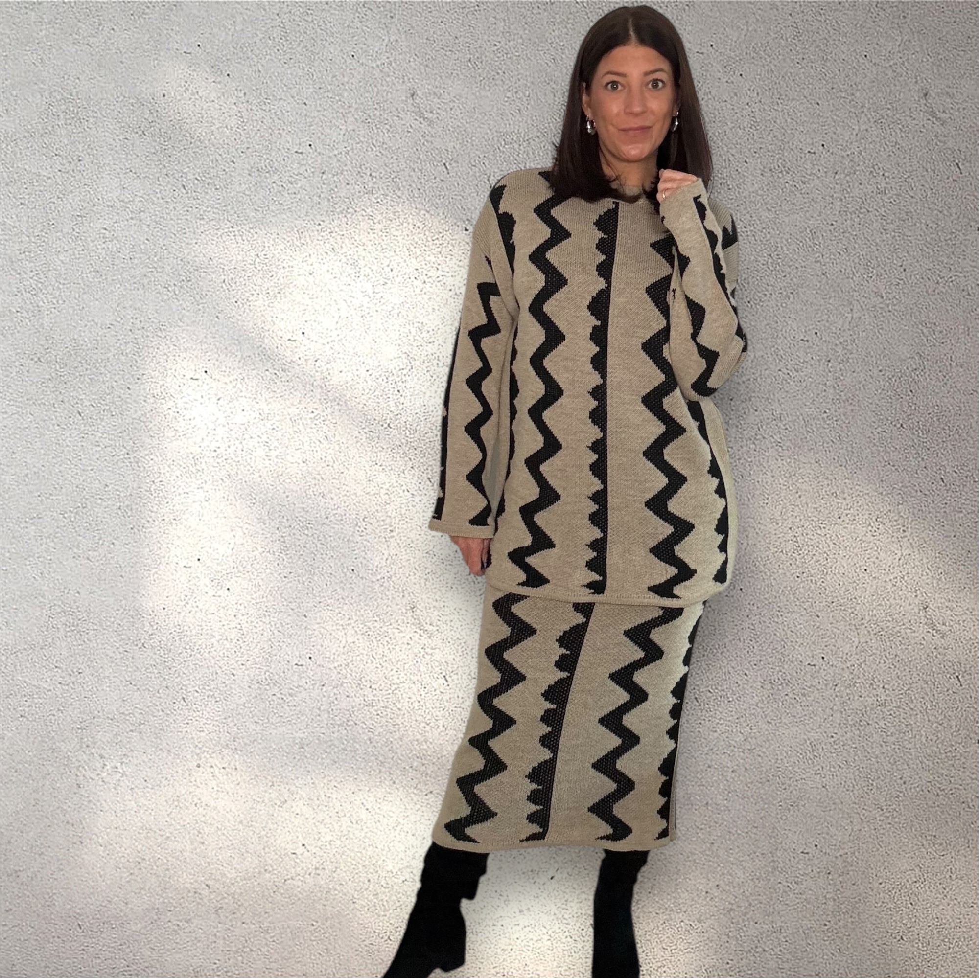 Stylischer Zweiteiler – Rock & Pullover im Zickzack-Design